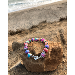 Custom made floral beaded bracelet with silver tone accents. Fits a 7" wrist best.